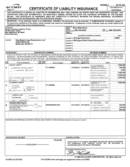 Certificate of Insurance |